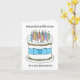 Eine einfache Abbildung eines weißen Geburtstagskuchens, bedeckt mit beleuchteten Kerzen und mit einem blauen Bogen, der um ihn geklebt ist. Das Bild wird von den Worten "Herzlichen Glückwunsch zum Geburtstag eines ganz besonderen Onkels" begleitet.