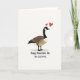 This Valentine's Day card shows a Canada goose in the center on a soft off-white background. The goose is facing right and has brown feathers, a creamy belly, and a black head and neck with a white chin strap. Its eye and posture give it a calm, slightly proud look that still feels sweet. Two red hearts float above its head, making the whole scene feel loving and a little silly 💘❤️. A light shadow under its feet helps it feel grounded on the page. Below the goose, the card says “Happy Valentine’s Day You Silly Goose” in casual, hand-drawn cursive-style writing. The message is easy to read and adds a friendly joke that fits the picture.