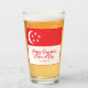 Feiern Sie den Nationalfeiertag Singapurs mit diesem Pint-Glas, das die ikonische Halbmond, die Sterne und die rot-weißen Farben der singapurischen Flagge mit der Begrüßung und Datum auf der unteren Hälfte. Majulah Singapura! Design © W.H. Sim. Weitere Informationen unter zazzle.com/expressionsoccasions