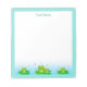 Niedliche, fröhliche Frösche mit Rahmen auf weißem Notepad. Frösche symbolisieren viel Glück!