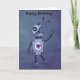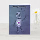 Blue Roboter Geburtstagskarte mit einer Abbildung eines glücklichen singenden Roboters. Diese niedliche Roboter-Geburtstagskarte wäre ein perfektes Geschenk für Freaks und alle, die Roboter Lieben.