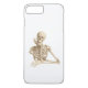 Glücklich lächelndes Skelett mit der göttlichen Hand, die auf seinem Kinn ruht.