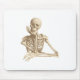 Glücklich lächelndes Skelett mit der göttlichen Hand, die auf seinem Kinn ruht.