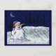 Dieser reizende Schneemann mit dem albernen Grinsen unter dem Mondlicht wird den Tag der Menschen, denen Sie es schicken, mit Ihren Feiertagsgruß aufheitern. Original digitale Malerei von Leslie Sigal Javorek.