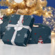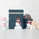 Happy Snowman mit roten Herzen und Schneeflocken mit marineblau Hintergrund