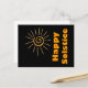 Happy Solstice Text mit einer Grafik einer Sonne.