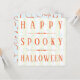 Standard 5,25" x 5,25" großes, quadratisches Halloween-Kartenvorlage mit ein paar Wirbel und Streifen, die sagen: "Happy Spooky Halloween." Ändern Sie die Hintergrundfarben, die Größe und fügen Sie Ihre eigene Kopie, genießen und boo!