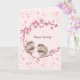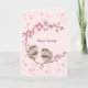 淡いピンクの桜と、かわいいすずめの愛らしいグリーティングカード!