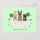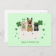 Drei Hunde, die aus einem Brief herauskommen, umgeben von glücklichen vierblättrigen Nelken. Ideal für St. Patrick's Day.