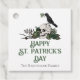 Dieses elegante St. Patrick's Day eckige Geschenkschild mit handgezeichnet irischen und gotischen Motiven in schwarzer Tinte zeigt einen Schädel und eine schwarze Krähe mit grünen Rose, Blätter, Beeren, Wildblumen und grünen Nelken. Die Rückseite weist ein schönes Muster mit diesen Elementen auf. Eleganter weißer Hintergrund.