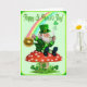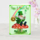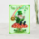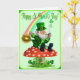 Am St. Patrick's Day sitzt ein kleiner Leprechaun auf einem farbenfrohen Pilz, der einen Topf Gold in einer Hand hält und sich darüber freut, wie sich sein Konkord-Pfeifenrauchen zu vier Blattklumpen bildet. Alles Gute zum St. Patrick's Day!