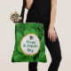 Eine niedliche Tasche, die den Happy St. Patrick's Day mit einem Hintergrund-Foto eines Feldes mit grünen Nischen sagt. Ein Rundrahmen mit einem IMITAT, der eine Goldfolie umschließt, enthält den Text, der in einem trendigen Schriftart geschrieben ist und eine grüne Kleeblatt-Abbildung enthält.