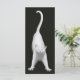 Original Gemälde einer glücklichen, dehnenden weißen Katze von Carolyn McFann auf einem hochwertigen Lesezeichen für Fans von Katzen.
