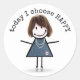 Happy Strichfigur-Mädchen in Sneakers mit Zitat Runder Aufkleber