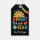 Eine niedliche Begrüßung zum Geschenktag für einen Lehrer, der sich an Geschenke für seine Schüler mit einer glücklichen Sonne, Regenbogenfarben, lustigen Schriftart, einem Apfel und einem Globus anschließen kann. Personalisieren Sie mit Ihrem Namen. Auf der Rückseite sind Regenbogenstreifen zu sehen!