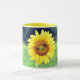 Diese fröhliche Tasse zeichnet sich durch ein einzigartiges Bild einer "lächelnden" Sonnenblume aus, mit der Höflichkeit eines zeitlich getreuen Besuchs eines Bienenpaares. Die Innenseite der Tasse und der Griff sind gelb verglast, um dem Bild zu entsprechen. Die aus Keramik bestehende Tasse hat eine Größe von 15 Unzen und ist sowohl Geschirrspüler als auch Mikrowelle. Wenn Sie Fragen zu dieser Tasse haben oder mir helfen möchten, dieses Design auf einen anderen Artikel zu übertragen, können Sie mich über Zazzle kontaktieren. Ich helfe Ihnen gerne, das Bild korrekt zu gestalten!