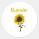 Happy Sunflower - Name Brandie Runder Aufkleber