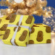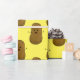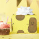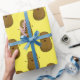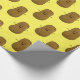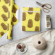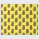 Funny Food Packpapier. Ein Wiederholungsmuster einer niedlichen Cartoon-Kartoffel mit einem großen Lächeln auf seinem Gesicht. Der Hintergrund ist gelb, kann aber in eine beliebige Farbe geändert werden.