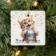 On this cute Holiday ornament, an adorable little ginger tabby kitten holds a stolen silver tree bulb. The text at the bottom front says "Merry Christmas". A gold snowflake background pattern adds interest to the design. The same image is on the back, but the text that says "Happy New Year" is a custom text field that you may easily change to a name or a signature, if you'd like.
