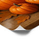 Feiern Sie die Jahreszeit der Dankbarkeit mit diesem wunderbar illustrierten Happy Thanksgiving Poster, mit einer rustikalen Cornucopia überfüllt mit Kürbis, Gourds, Trauben und goldenem Mais, und gerahmt mit reichen Herbstblättern in warmen Tönen.