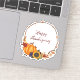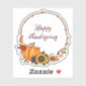 handgezeichneter Kranz mit Orangenkürbis, Sonnenblume, grüner Gourd, Pilze, roter Apfel, Birne, Herbstblätter, Kerzen, Zimtkaffee-Tasse, Weinberge Saisonduft zeichnend