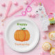 Alles Gute zum Erntedanktext mit großem Kürbis auf weißem Hintergrund.