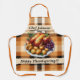 Das Design der Erntedank-Schürze zeichnet sich durch einen festlichen karierten Hintergrund in warmen Herbsttönen in Orange, Beige und Schwarz aus. In der Mitte gibt es eine detaillierte Abbildung eines traditionellen Erntedank-Festes, mit einem gerösteten Truthahn umgeben von Gärten, Kartoffeln und Trauben. Der anpassbare Text über dem Bild lautet "Koch [Name]" (Beispiel: Koch Johnson), und unten steht "Glückliches Erntedankfest!!!!" in einem klassischen Serif-Schriftart. Diese Schürze verbindet sowohl rustikalen Charme als auch Urlaubsjubiläum und macht sie zu einem großartigen Geschenk für den Koch der Familie oder für jeden, der das Erntedank-Fest veranstaltet.