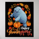 Happy Thanksgiving Manatee in Blätter Pumpkins Flo Poster