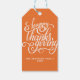 Happy Thanksgiving Modern Script Harvest Orange Geschenkanhänger