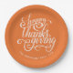 Happy Thanksgiving Modern Script Harvest Orange Paper Plate