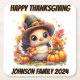 Dieses reizende Design des "Happy Thanksgiving" zeichnet sich durch eine bezaubernde Babytruthe aus, die einen Pilgerhut trägt und dem Thema Erntedank eine skurrile und festliche Touch verleiht. Der Truthahn ist von hellen orangefarbenen Kürbissen, Herbstblättern und farbenfrohen Federn umgeben, die alle in warmen, einladenden Farbtönen des Herbstes gehalten sind. Seine großen, ausdrucksstarken Augen und seine weichen Federn verleihen ihm ein spielerisches, niedliches Aussehen. Die Szene wird in einem kühlen Schriftart mit dem fröhlichen Text "Glückliches Erntedankfest" zusammengeführt.