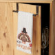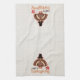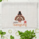 Feiern Sie Erntedank mit diesem bezaubernden Pilger Truthahn Küchentuch, das jedem ein "Glückliches Erntedankfest" auf einem Imitat Leinen Hintergrund wünscht.