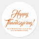 Happy Thanksgiving orange weiße, benutzerdefiniert Runder Aufkleber