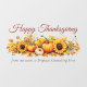 Dieses altmodische Feiertagsfenster bietet einen Vintagen zeichn von Orangenkürbissen, Herbstlauben und niedlichen Herbstsonnenblumen. Nostalgischer Glückwunsch Thanksgiving-Druck mit brauner Schrift Ihres Firmennamens und personalisierte berufliche Nachricht auf der Rückseite für Kunden und Freunde.