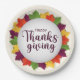 Alles Gute zum Erntedankfest Papier Teller mit einem Rahmen von bunten Herbstblättern.