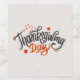 Ein digitales Kunstwerk mit den Worten "Happy Thanksgiving Day" in einem dekorativen, kalligrafischen Stil. Das Wort "Erntedank" wird in einem fett gedruckten, schwarzen Skript mit eleganten Wirbel und Schnörkeln hervorgehoben, während "Tag" in einem ergänzenden roten Skript, auch mit einer kalligrafischen Touch, geschrieben wird. Über "Erntedank" steht das Wort "glücklich" in einer kleineren, halbkreisförmigen Anordnung mit winzigen roten Akzenten. Das Design besteht aus kleinen Blätter aus rotem Ahorn und sternähnlichen Formen, die rund um den Text verteilt sind, was das festliche Thema ergänzt. Der Hintergrund ist eine weiche, cremefarbene Farbe mit einer subtilen, grauen Textur, die dem Stück ein Vintages oder rustikales Gefühl verleiht. Der Gesamtstil ist sauber und modern, mit einem Schwerpunkt auf Typografie und einer begrenzten Farbpalette.