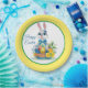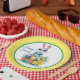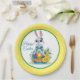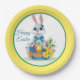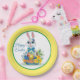 Eine schöne Ostergelbe Papiertafel mit Hasen und Korb für Ostergebäck. Für Ostergebäck.