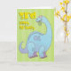Große blaue Dinosaurier, die ein Blatt essen, mit einem Geburtstag auf grünem Hintergrund.