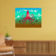 Niedliche Darstellung eines Oktopus auf dem Meeresboden im Cartoon. Bilder auf verschiedenen Geschenken und Produkten erhältlich.