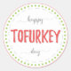 2,5 cm runde Etiketten, die "Happy Tofurkey Day" für alle Ihre festlichen (und vegetarischen!) Geschenkverpackungen und Kartenvorbereitung vorschreiben. Rot, Grün und Silber.