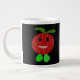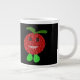 Diese phantastische Tasse zeigt einen niedlichen Cartoon einer lächelnden Tomate mit schwarzen Augen, rosa Mund und niedlichen kleinen grünen Füßen.