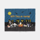 Eine Gruppe von Katzen und Hunden gehen trick oder behandeln zu Halloween Night! Zu den Begleitern in diesem Design zählen ein als Cowboy verkleideter Akita-Inu-Welpe, eine Norwegische Waldkatze mit einer Prinzessenkrone, ein sibirischer Husky, der einen Wagen mit Kürbis darin zieht, eine als Engel verkleidete persische Katze, ein Papillon, ein Basenji, ein als Hexe verkleideter Spitz und eine als Polizei verkleidete Grenze Hund. Unterdessen fliegen Fledermäuse und Hexen unter Vollmond über der Nachbarschaft! Dieses Design kann durch das Hinzufügen von eigenen Texten oder Bildern angepasst oder personalisiert werden!