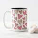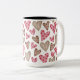 valentine day elegant colorful hearts two-tone coffee mug ,white and pink brown dotted hearts pattern coffee mug.