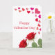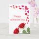 This beautiful Valentine’s Day greeting card features red roses and hearts.