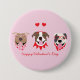 Niedliche Abbildung von drei französischen Bulldogs, die zum Valentinstag verkleidet sind. Ideal für Hundefreunde.