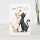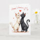 Black and white cat are slow dancing with each other with hearts around them isolated on white.