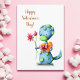 Niedliche und einfache Valentinerkarte mit einer blauen Eidechse, die eine Schachtel Pralinen und ein paar Blume enthält. Die Stimmung lautet "Happy Valentine's Day", aber Sie können sie mit Ihrer eigenen Formulierung personalisieren und für jeden anderen Anlass machen. Illustriert und entworfen von Patricia Alvarez.