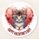 Happy Valentine's Day Little Kitten with Heart Runder Pappuntersetzer