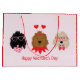 Niedliche Abbildung von drei Mini Goldendoodle Hunden in Rot und Rosa für den Valentinstag gekleidet. Ideal für Liebhaber von Haustieren während der Valentinstag-Saison.