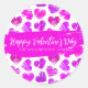 Happy Valentines Day Modern Lila Pink Heart Name Runder Aufkleber